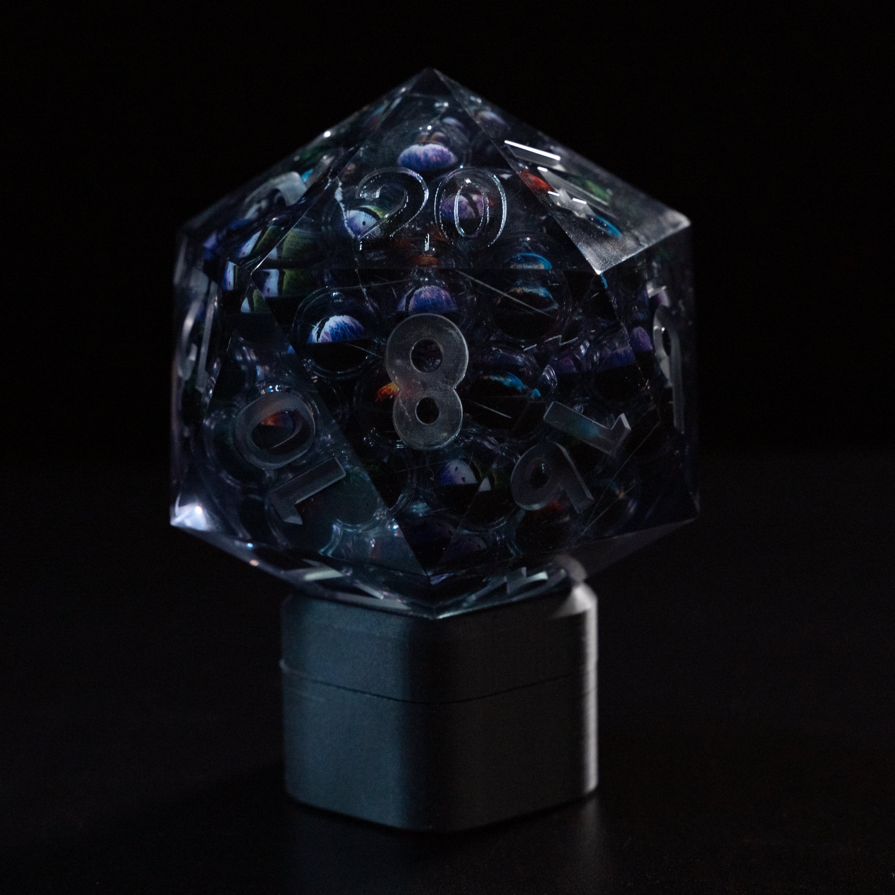 The Shoggoth Dice collection includes a number of chonk D20s that would look just perfect on your new free display stand.